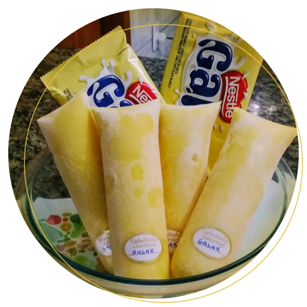 O geladinho de Galak. Ótimo sabor, com certeza você vai fazer sucesso com ele. E vai lucrar muito!
